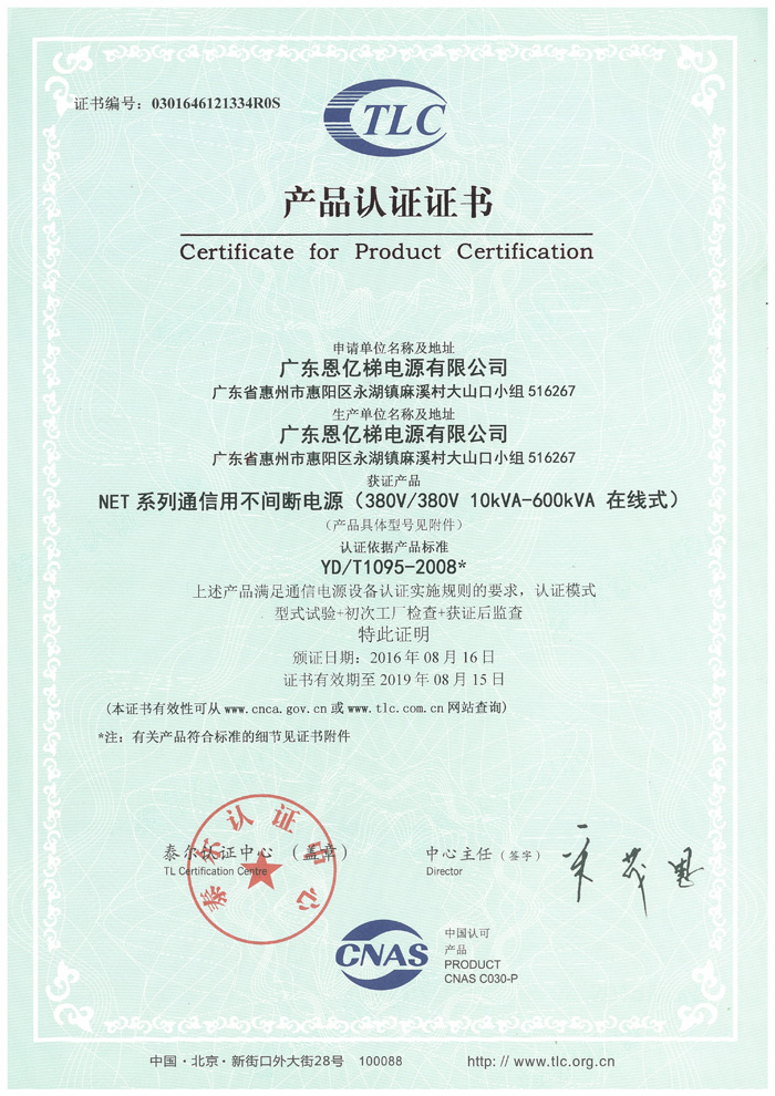 泰爾認證(通信用不間斷電源)