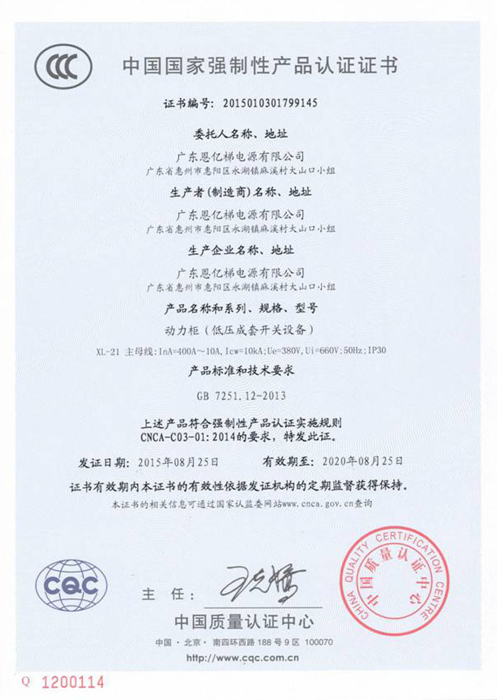 中國國家強制性產(chǎn)品認證(動力柜)